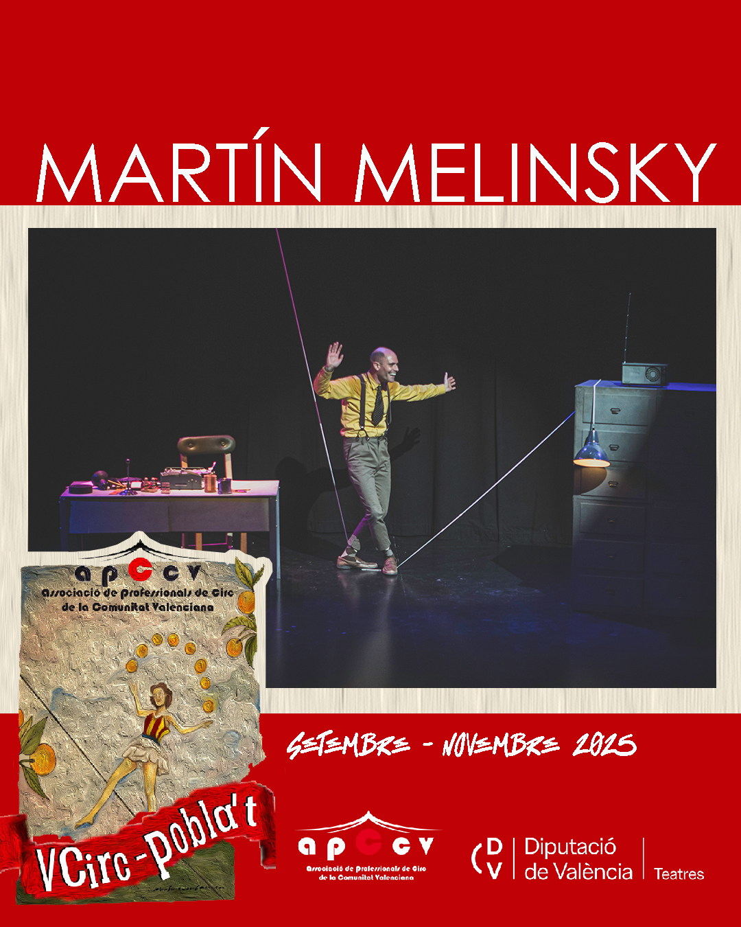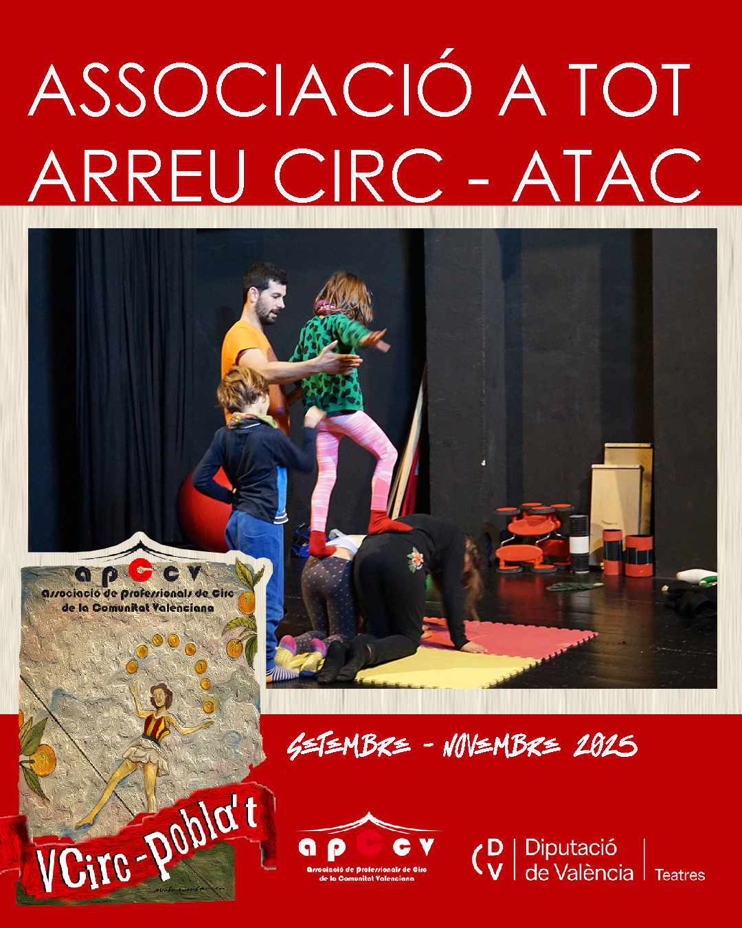L’ASSOCIACIÓ DE PROFESSIONALS DE CIRC DE LA COMUNITAT VALENCIANA programa la V edició del CIRC POBLA’T que es desenvoluparà de setembre a novembre de 2025 amb el suport de la Diputació de València - Teatres.
